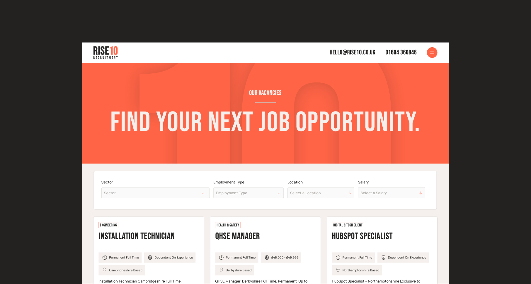 Rise10 are a specialist recruitment agency, so their brand and website needed to reflect that. When they approached us, their digital presence still needed defining and separating from the multitude of recruitment companies out there; they needed something that would make them stand out from the crowd, while conveying the expertise and specialist knowledge they already had.